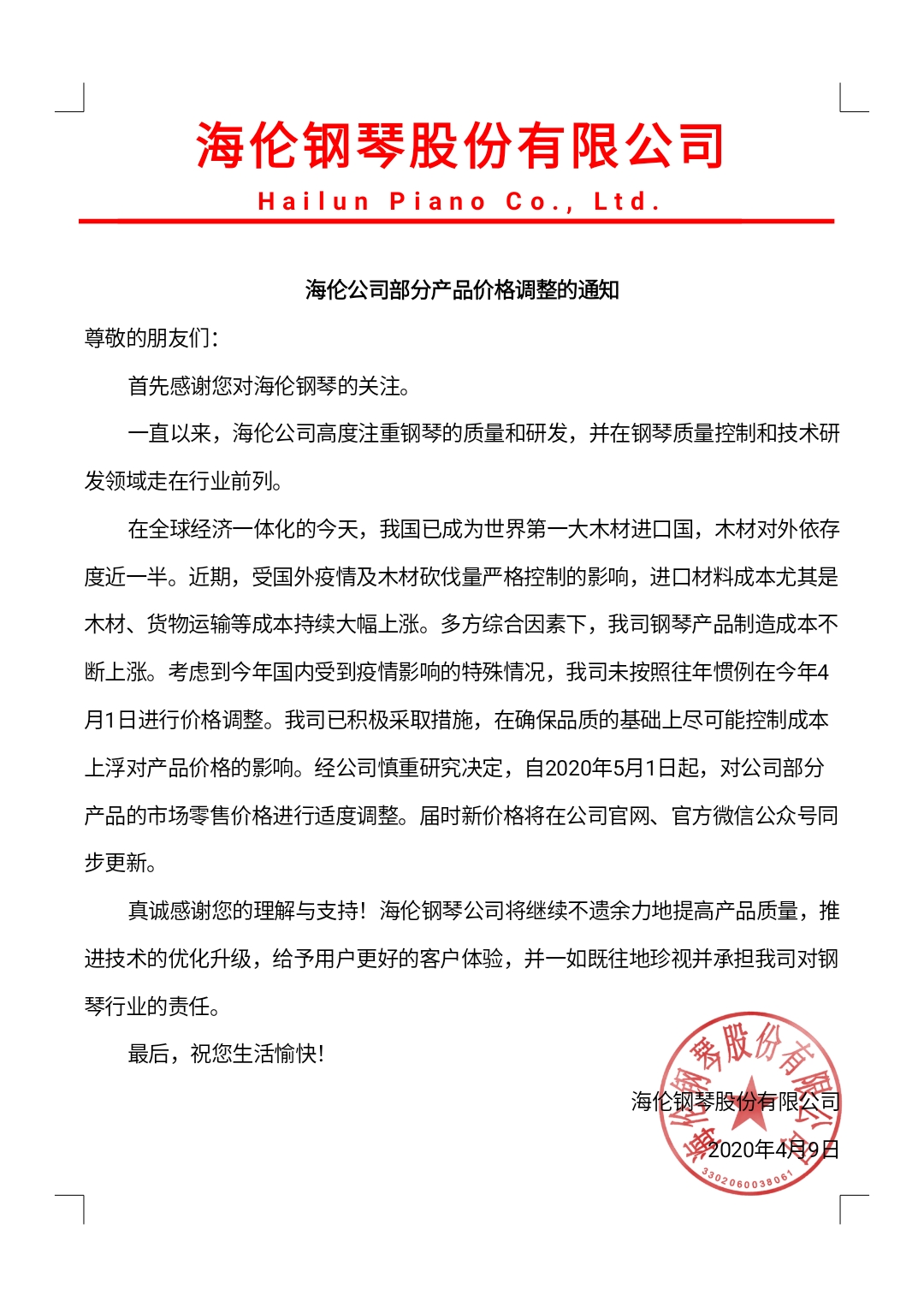 2020海倫公司產(chǎn)品價(jià)格調(diào)整的通知