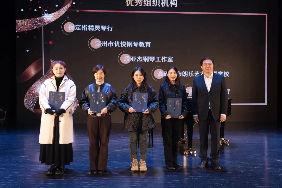 楊鳴教授為優(yōu)秀組織機構(gòu)頒發(fā)榮譽證書。希望菁英指導(dǎo)教師和優(yōu)秀組織機構(gòu)能夠再接再厲,用最好的教學質(zhì)量推動保定市鋼琴教育事業(yè)的發(fā)展,為保定市的文化發(fā)展增色,為建設(shè)品質(zhì)生活之城添瓦。