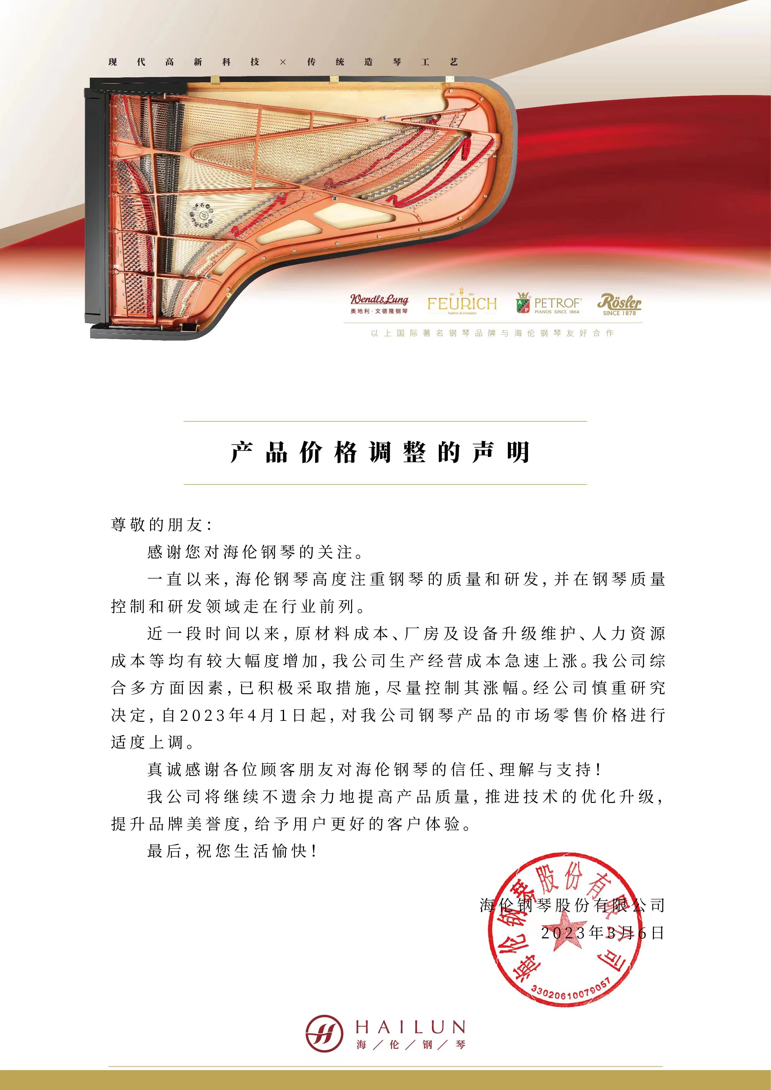 聚焦海倫丨海倫鋼琴股份有限公司產(chǎn)品價格調(diào)整聲明