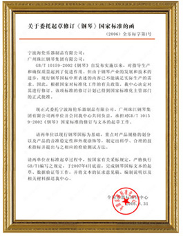 2006年,海倫鋼琴接受全國(guó)樂(lè)器標(biāo)準(zhǔn)化中心委托,開(kāi)始起草修訂《鋼琴》國(guó)家標(biāo)準(zhǔn)(GB/T10159-2008),該標(biāo)準(zhǔn)于2009年開(kāi)始實(shí)施。