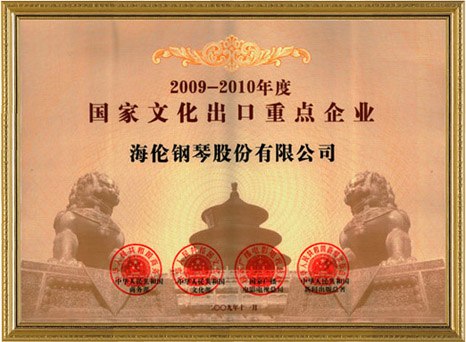 海倫鋼琴成為我國(guó)2009-2010年度的文化出口重點(diǎn)企業(yè)之一